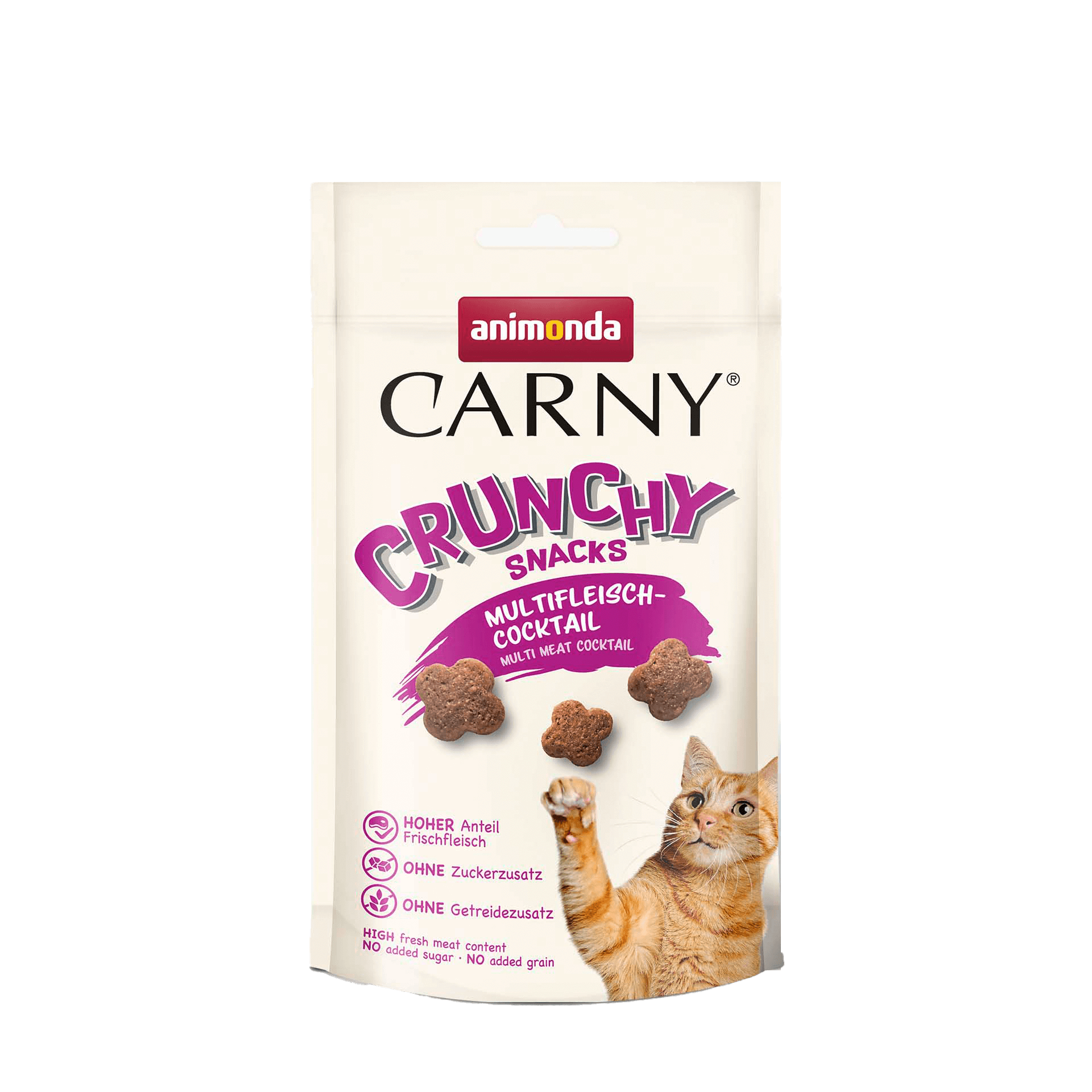 Der CARNY® Crunchy Snack ist ein knuspriger Leckerbissen für zwischendurch, der mit einer hohen Futterakzeptanz überzeugt. Dieser köstliche Knuspersnack bringt Abwechslung in den Katzenalltag. Er wird aus Frischfleisch und einem hohen Anteil an tierischen Zutaten hergestellt. Der Carny Crunchy Snack Multifleisch-Cocktail in der ansprechenden Blüten-Form, kombiniert frisches Wild mit Geflügel und ist perfekt für Katzen, die Abwechslung im Napf lieben.
